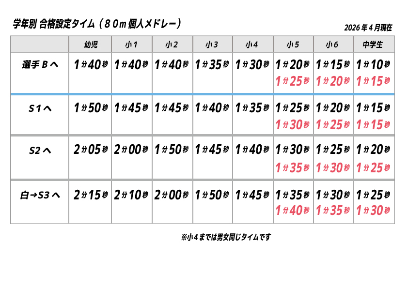 ・日本水泳連盟資格級「B4級」以上を1種目以上取得